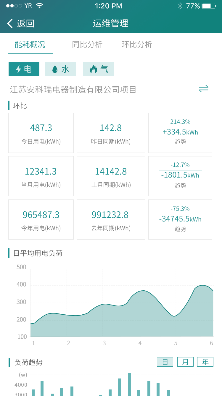 針對(duì)智慧用電部分,系統(tǒng)提供能耗分析功能,按回路可查詢?nèi)赵履甑哪芎膱?bào)表和曲線。