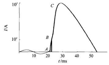 如圖2所示,當(dāng)發(fā)生短路故障時(shí),傳統(tǒng)空氣開關(guān)在電流升至C點(diǎn)時(shí)才能動(dòng)作,且無法瞬時(shí)切斷電流,而固態(tài)開關(guān)則可以在電流升至B點(diǎn)時(shí)即瞬間切斷短路電流。