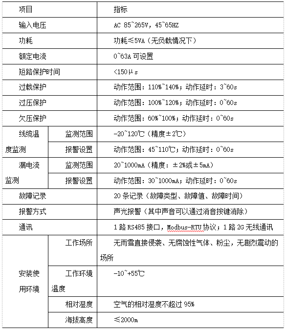 E)電纜溫度監(jiān)測(cè)功能,被測(cè)線纜溫度超過報(bào)警設(shè)定值時(shí),保護(hù)器告警或限流保護(hù)(可設(shè));