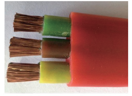 電線電纜主要包括普通電線電纜、阻燃電線線纜和阻燃耐火電線電纜。其中,普通電線電纜有包括聚氯乙烯電線電纜、交聯(lián)聚乙烯電線電纜(如圖1)和橡膠電線電纜(如圖2)。特別是橡膠電纜,其優(yōu)點(diǎn)在于能夠承受住極嚴(yán)寒環(huán)境的考驗(yàn),而且具有非常好的彎曲性,能夠滿足高差較大甚至是垂直敷設(shè)要求。同時(shí),橡膠電纜還大多應(yīng)用于移動(dòng)電氣設(shè)備的電器線路中。交聯(lián)聚乙烯電線電纜的特點(diǎn)是在實(shí)際工作過程中,即使發(fā)生燃燒也不會(huì)產(chǎn)生有毒氣體,缺點(diǎn)是并不具有阻燃性。因此,交聯(lián)聚乙烯電線電纜大多應(yīng)用于對(duì)環(huán)境清潔度有較高要求的工業(yè)環(huán)境中;麋氯乙烯電線電纜是現(xiàn)階段應(yīng)用較為廣泛的一種電線電纜,但其缺陷在于一旦發(fā)生燃燒會(huì)產(chǎn)生大量有毒氣休,因此不適用于人口密集的場(chǎng)所。