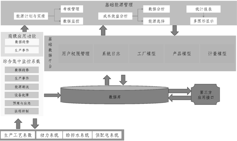 積極推動互聯(lián)網(wǎng)、大數(shù)據(jù)、人工智能等新一代信息技術(shù)與鋼鐵制造的深度融合是鋼鐵企業(yè)下一步研發(fā)重點[9]。能源管理系統(tǒng)基于自動化技術(shù)、網(wǎng)絡(luò)通信技術(shù)、實時數(shù)據(jù)庫技術(shù)、數(shù)據(jù)分析及預(yù)測技術(shù),對鋼鐵企業(yè)提供數(shù)據(jù)定制化管理服務(wù),優(yōu)化能源管理。該系統(tǒng)建成后,將為鋼鐵企業(yè)的管理、生產(chǎn)計劃、調(diào)度決策及OA提供準確、實時的生產(chǎn)工藝計量數(shù)據(jù),對于構(gòu)筑信息化工程、實施精細化生產(chǎn)和精細化管理是十分重要的??梢愿鶕?jù)系統(tǒng)所采集的數(shù)據(jù)進行公司級、廠際級能源核算,實現(xiàn)計量系統(tǒng)分級化管理,提高計量信息化管理水平,使計量管理更精細、更準確、更高效。是鋼鐵企業(yè)通往節(jié)能降耗,減員增效路徑上的重要“橋梁”。