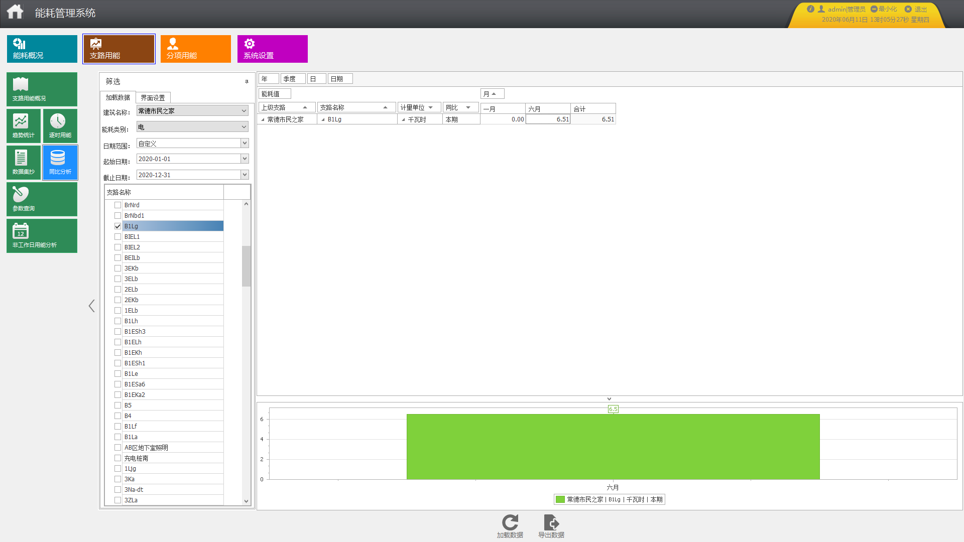 系統(tǒng)可以統(tǒng)計(jì)各分項(xiàng)某段時(shí)間內(nèi)逐日、逐周、逐月、逐季、逐年用能。可查看分項(xiàng)中各支路用能趨勢(shì),可根據(jù)已有的日期或者自定義時(shí)間進(jìn)行查詢,統(tǒng)計(jì)數(shù)據(jù)可導(dǎo)出至Excel。