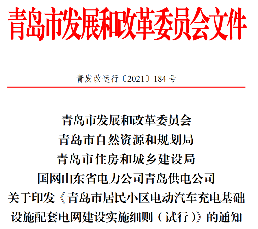 (2)青島市發(fā)展和改革委員會 關于印發(fā)《青島市居民小區(qū)電動汽車充電基礎