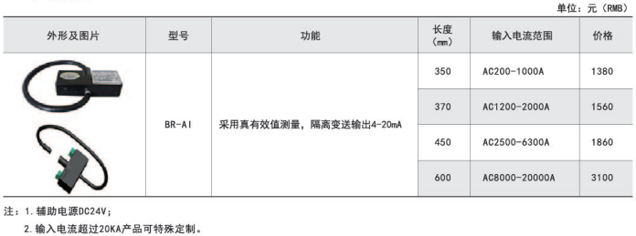 技術(shù)要求:輸入電流AC1000A;輸出DC4-20mA;準(zhǔn)確級(jí)0.5;長度350mm。
