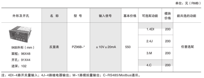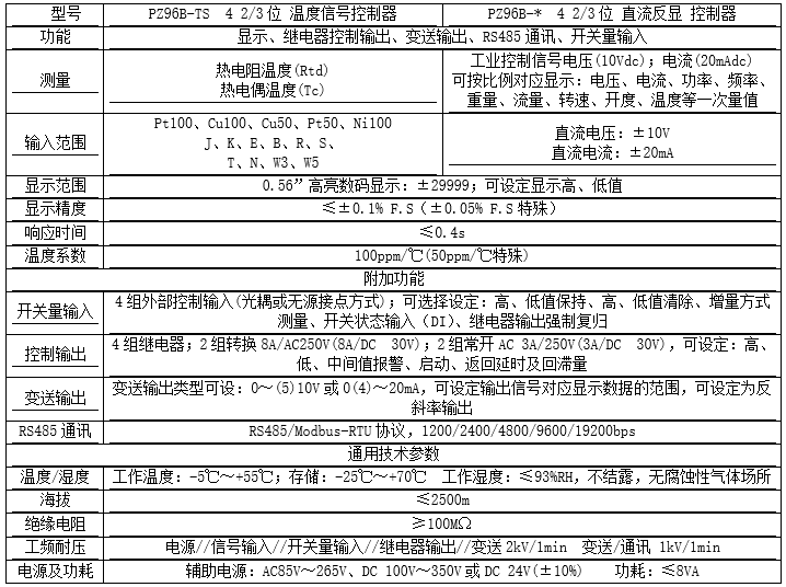 該系列儀表可測量直流電流、直流電壓、各種類型熱電偶、熱電阻、電阻傳感器,帶DC24V電源輸出可給外部兩線式變壓器直接供電。儀表帶有多種可選功能:RS485接口、模擬量輸出、開關(guān)量輸入、繼電器報警輸出等。