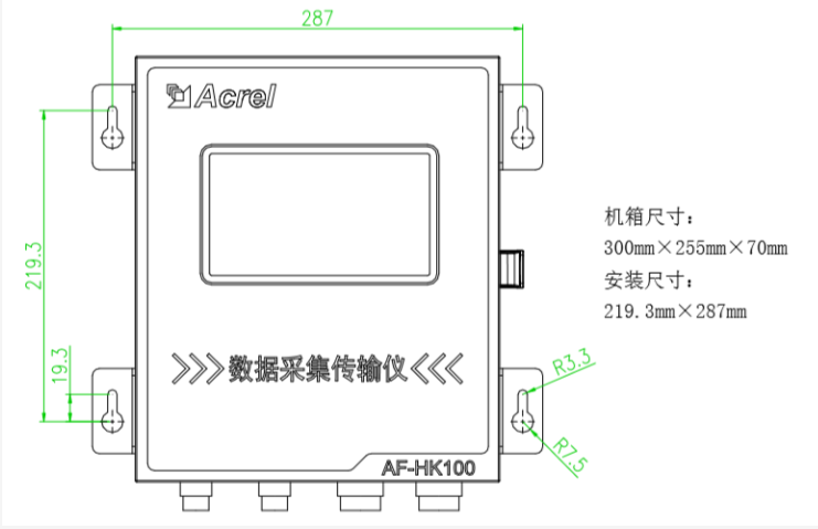 AF-HK100 污染源在線自動(dòng)監(jiān)控(監(jiān)測(cè))數(shù)據(jù)采集傳輸儀是應(yīng)環(huán)保領(lǐng)域各級(jí)國控、省控 及市控污染源環(huán)境在線監(jiān)控(監(jiān)測(cè))系統(tǒng)的需求而開發(fā)研制的產(chǎn)品,通過模擬通道、開關(guān)通 道、數(shù)字通道(RS232/485/LoRa)與前端各類監(jiān)測(cè)儀器/儀表實(shí)現(xiàn)無縫連接,進(jìn)行本地?cái)?shù)據(jù) 采集、存儲(chǔ)、處理與展示,并通過 4G/有線等網(wǎng)絡(luò)將數(shù)據(jù)遠(yuǎn)傳至監(jiān)控中心。