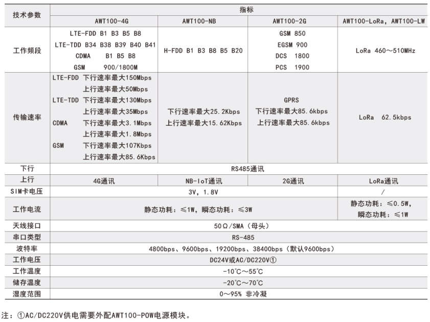 注:①AWT100-2G/NB/4G無線通信終端能通過安科瑞平臺協(xié)議與安科瑞服務(wù)器通訊。