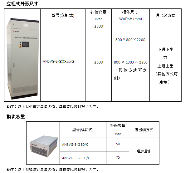 智慧型動(dòng)態(tài)無(wú)功補(bǔ)償裝置主動(dòng)根據(jù)系統(tǒng)的線性動(dòng)態(tài)需求,自動(dòng)調(diào)節(jié)有源及無(wú)源模塊的輸出配比,ANSVG-S-G整機(jī)主要是由ANSVG-S-G模塊、無(wú)源補(bǔ)償電容器(TSC)、液晶顯示器組成。