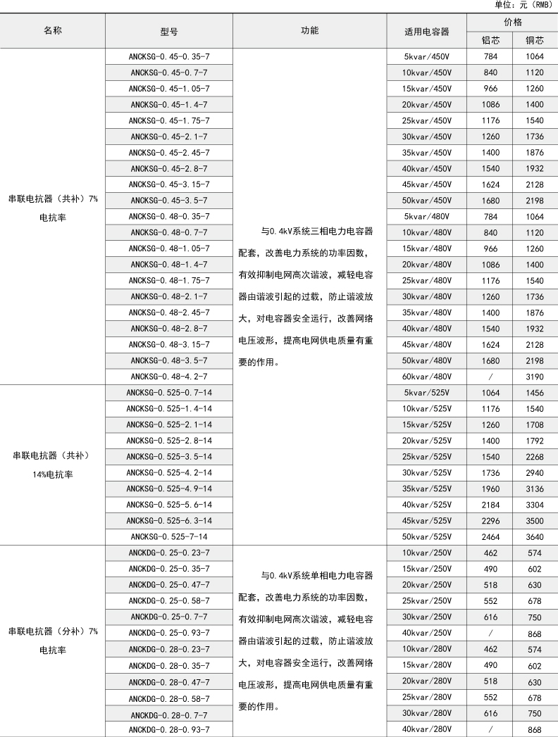ANCK系列串聯(lián)電抗器與ANBSMJ系列自愈式低壓并聯(lián)電容器配套使用,主要用于提高0.4kV電力系統(tǒng)的功率因數(shù),有效抑制電網(wǎng)的高次諧波,減輕電容器由諧波引起的過載,防止諧波放大,對(duì)電容器的安全運(yùn)行,改善網(wǎng)絡(luò)電壓波形,提高供電質(zhì)量和電網(wǎng)安全經(jīng)濟(jì)運(yùn)行起良好作用。