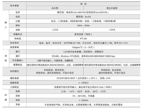 技術(shù)要求:輸入三相電壓AC220V;輸入電流AC5A;投切方式順序投切;補償方式三相共補;投切控制路數(shù)6路;開關(guān)量輸入6路;柜內(nèi)溫度檢測。