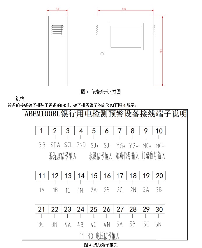 ABEM100BL型銀行用電檢測預(yù)警設(shè)備(以下簡稱“設(shè)備”)是安科瑞自主研發(fā)的集監(jiān)視、報警、管理和上傳于一體的設(shè)備,該設(shè)備主要安裝現(xiàn)場,采用壁掛式的安裝方式,用來采集現(xiàn)場的各種電參量和信號,主要包括故障電弧、剩余電流電流、溫度、電壓、電流、功率電能等,設(shè)備可以通過4G信號上傳至云平臺。