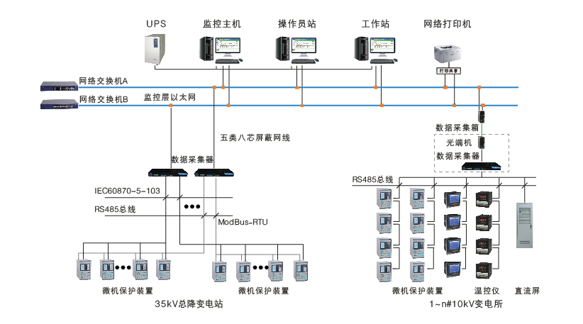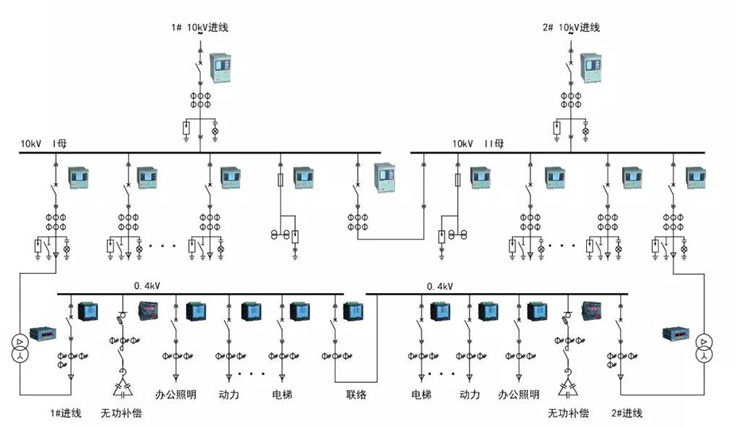用戶端智能配電監(jiān)控系統(tǒng)適用于各行業(yè)35kV~0.4kV電壓等級的用戶端供、配電系統(tǒng)運行狀態(tài)監(jiān)視和控制管理,對用戶配電網(wǎng)絡(luò)和電氣設(shè)備的提供不間斷保護、監(jiān)視、控制,提高用戶供電可靠性,提高用戶供配電系統(tǒng)的自動化水平,實現(xiàn)可靠、安全、高效的配電、用電。