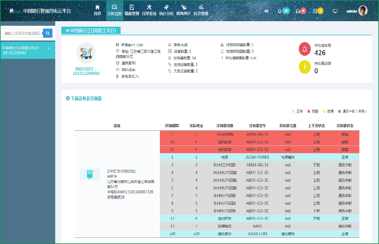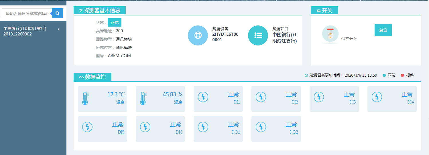 可以按省、市、區(qū)縣篩選或者項目名稱查詢,顯示項目的基本信息和安裝的設(shè)備信息