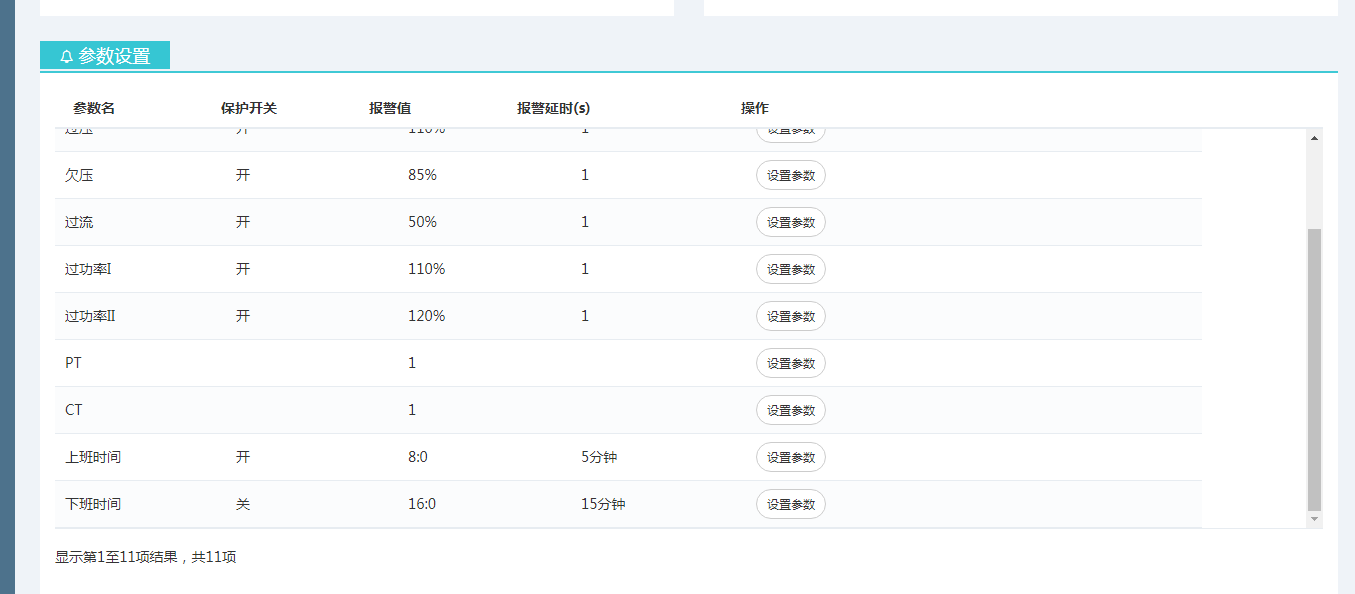 可以設(shè)置報警參數(shù)及對應(yīng)的保護開關(guān),對上下班時間和對應(yīng)的延時進行設(shè)置