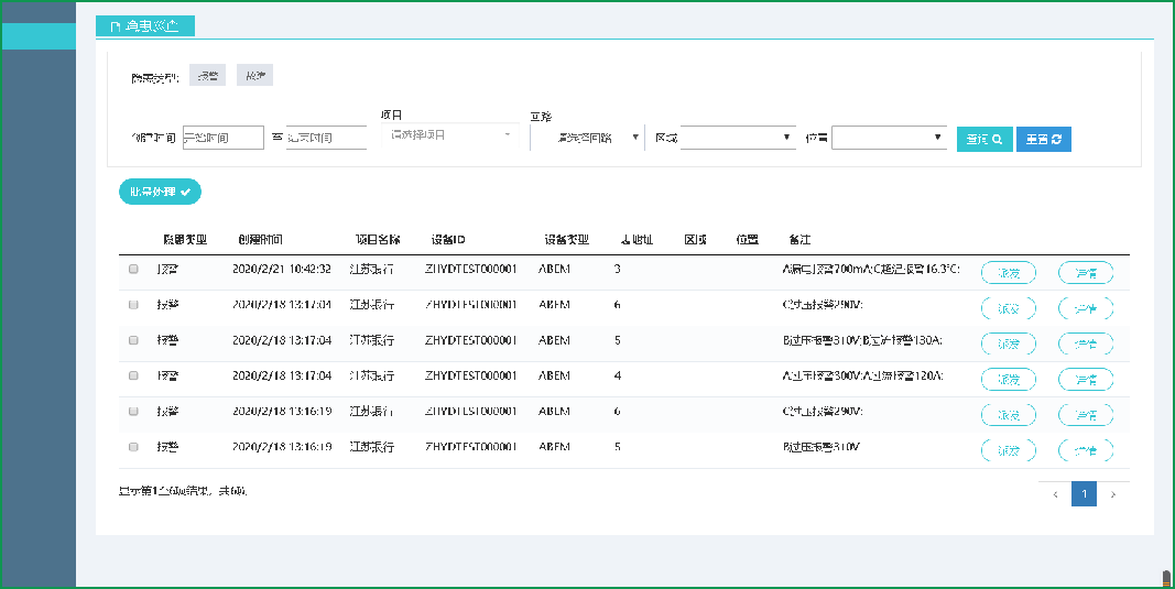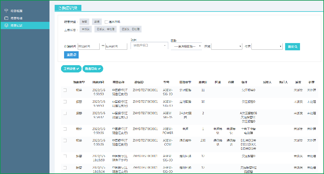 隱患管理:隱患管理包括隱患巡查、隱患派發(fā)、隱患處理、隱患記錄等功能。從報警查詢,分派,處理,查看過程。形成一個閉環(huán),方便客戶追蹤整個流程。