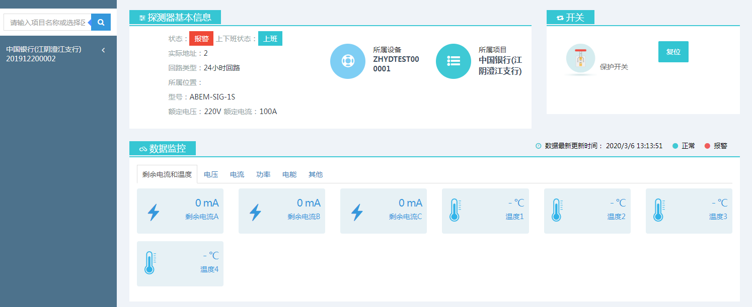 針對每個回路,可以查看各個回路的實時電參量,上下班狀態(tài),回路狀態(tài)。
